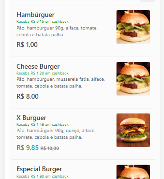 O Cashback devolve parte do valor da compra em forma de créditos para o cliente utilizar em pedidos futuros.